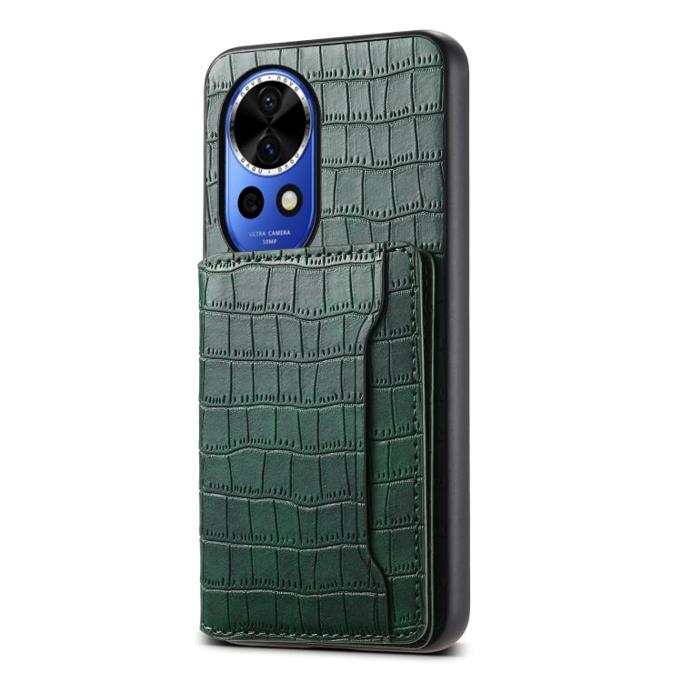 Funda para Huawei Nova 12 con Diseño Bolsa de Tarjeta y Textura de Cocodrilo (Verde)