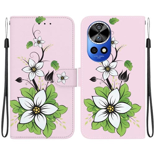 - 1x Funda de Cuero para Huawei Nova 12 Pro con Dibujo Coloreado y Textura de Cristal (Lirio)