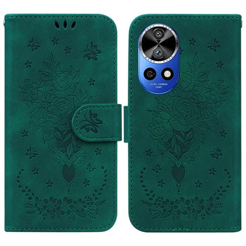 Funda de Cuero Huawei Nova 12 Pro y Nova 12 Ultra Butterfly Rose En Relieve (Verde)
