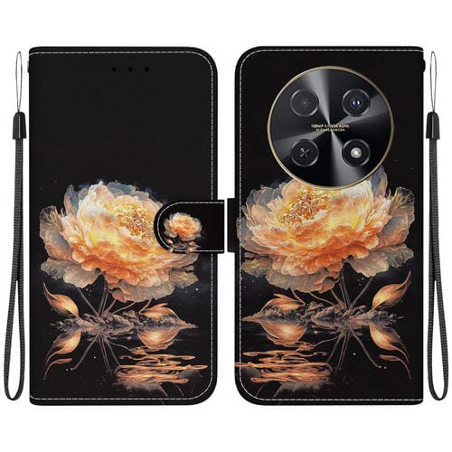 - 1x Funda de Cuero para Huawei Nova 12I 4G con Dibujo Coloreado y Textura de Cristal (Peonía Dorada)