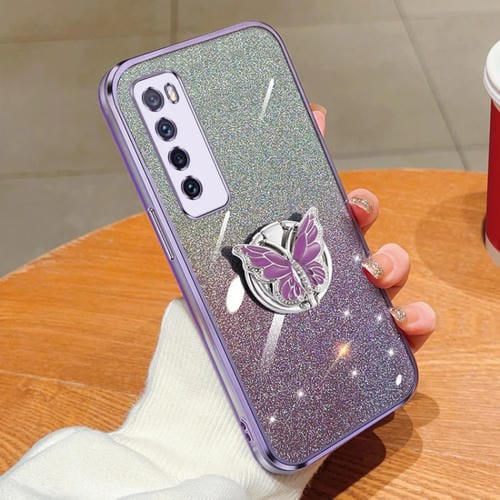 - 1x Funda TPU para Huawei Nova 7 con Soporte de mariposa y brillo degradado (Púrpura)