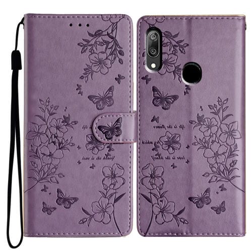 Funda para Huawei P Smart Z de Cuero con Relieve Flor de Amor y Mariposa (Púrpura)