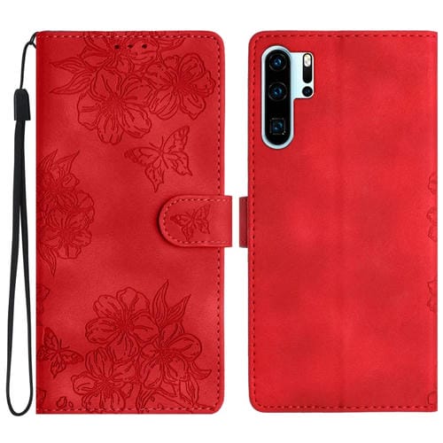 Funda para Huawei P30 Pro Cherry Blossom Butterfly Skin Feel de PU en Relieve (Rojo)