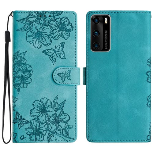 Funda para Huawei P40 Cherry Blossom Butterfly Skin Feel en PU Relieve (Verde)
