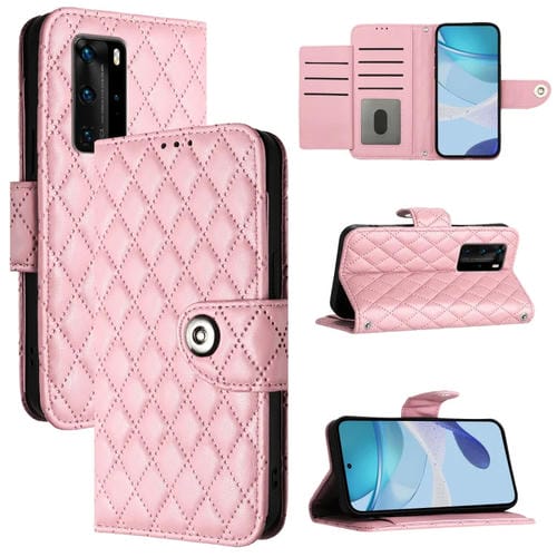 - 1x Funda de Cuero para Huawei P40 Pro con Tapa, Textura Rómbica y Cordón (Rosa)