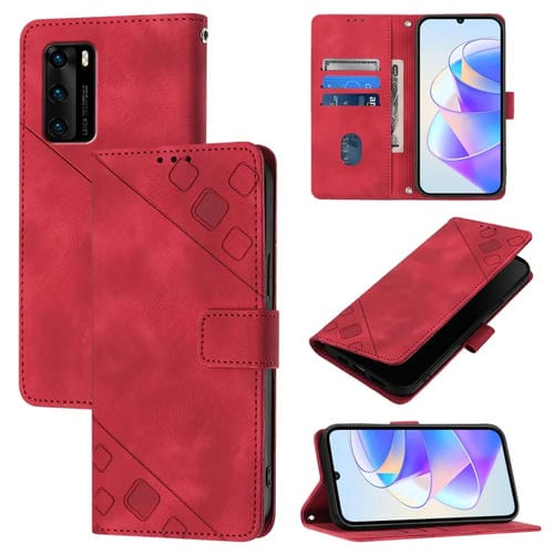 - 1x Funda de Cuero para Huawei P40 Skin Feel con Relieve (Rojo)