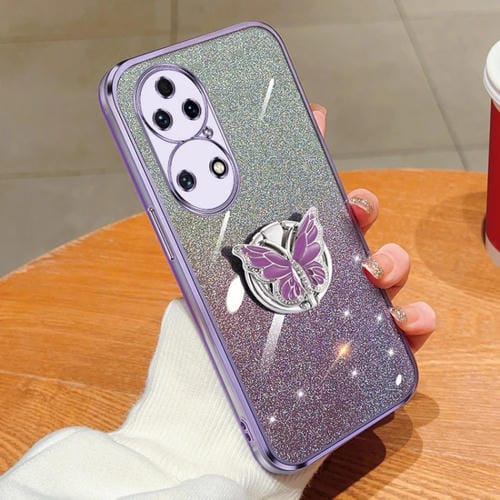 Funda TPU para Huawei P50 con Soporte de Mariposa y Brillo Degradado Plateado (Púrpura)
