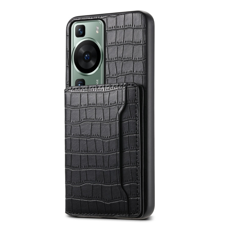 Funda para Teléfono Huawei P60 con Diseño Bolsa de Tarjeta y Textura de Cocodrilo (Negro)
