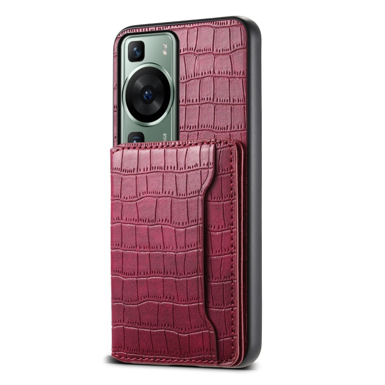 Funda para Teléfono Huawei P60 con Diseño de Bolsa de Tarjeta y Textura de Cocodrilo (Rojo)