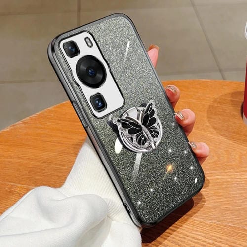 Funda TPU para Huawei P60 con Soporte de Mariposa y Brillo Degradado (Negro)