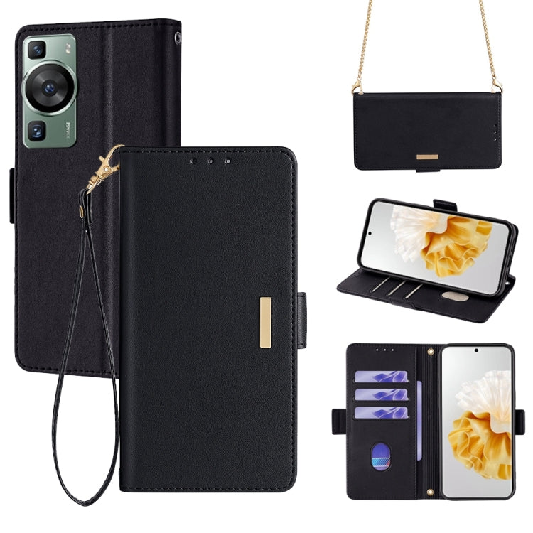 Funda de Cuero con Cadena Cruzada para Huawei P60 / P60 Pro (Negro)