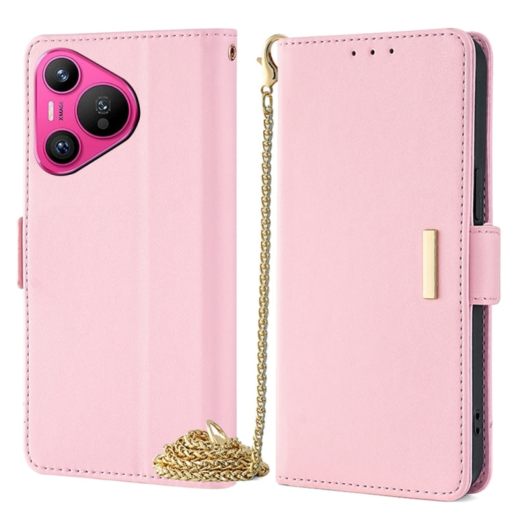 Funda de Cuero para Huawei Pura 70 5G con Cadena Cruzada (Rosa)