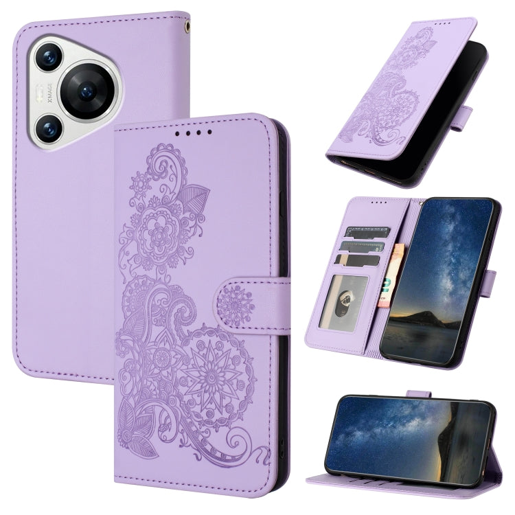 Funda de Cuero para Huawei Pura 70 Datura Flower con Tapa en Relieve (Púrpura)