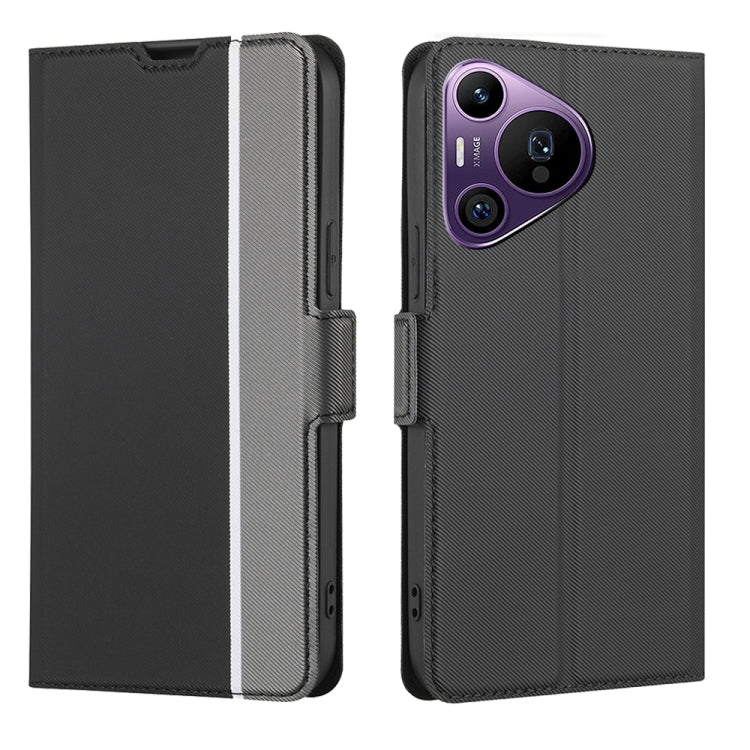 Funda de Cuero para Huawei Pura 70 Pro y 70 Pro+ 5G con Botón Lateral y Textura de Sarga (Negro)