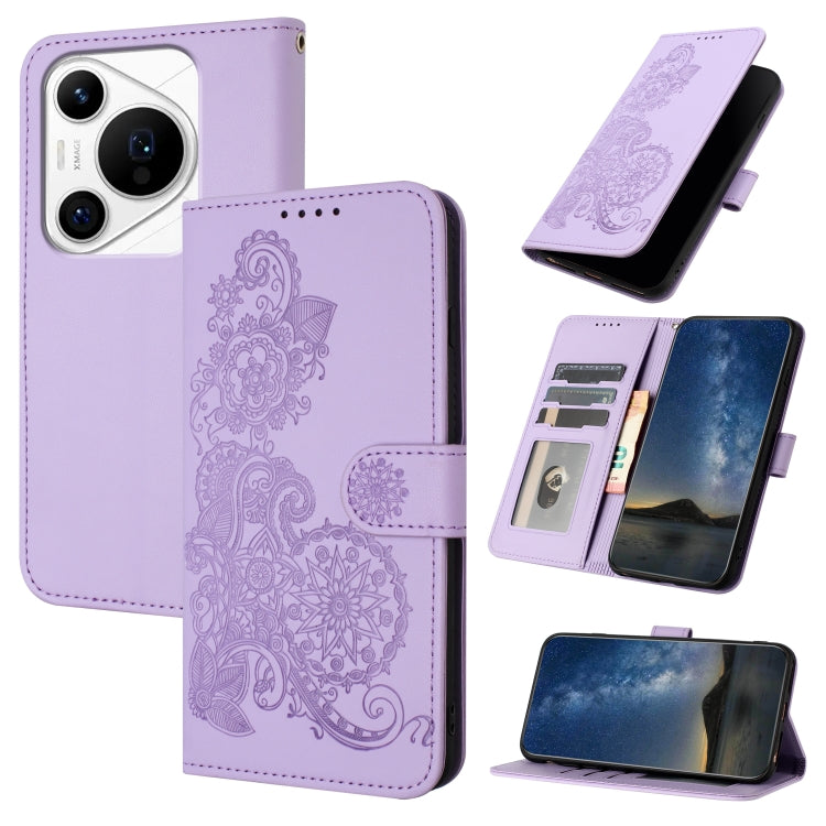 Funda de Cuero para Huawei Pura 70 Pro y 70 Pro + con Tapa en Relieve (Púrpura)