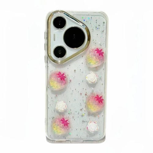 - 1x Caja de Teléfono TPU para Huawei Pura 70 Pro con Flor de Fresa 3D y Marco Galvanizado (Fresa Rosa)