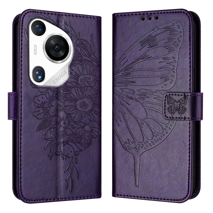 Funda de Cuero para Huawei Pura 70 Pro con Mariposa en Relieve (Púrpura Oscuro)