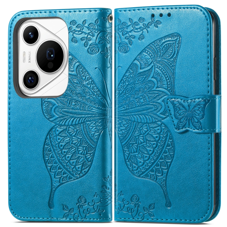 Funda para Huawei Pura 70 Pro+ de Cuero con Relieve Flor y Mariposa (Azul)