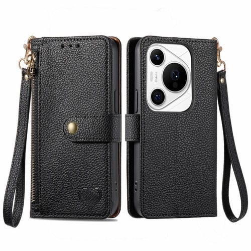 Funda de Cuero Love Zipper Lanyard para Huawei Pura 70 Pro+ (Negro)