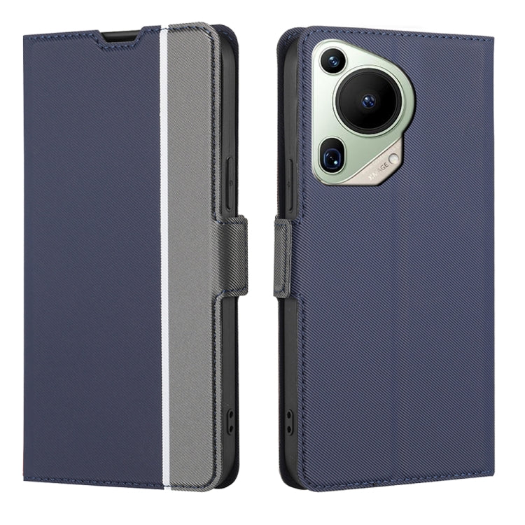 Funda de Cuero para Huawei Pura 70 Ultra 5G con Botón Lateral y Textura de Sarga (Azul)