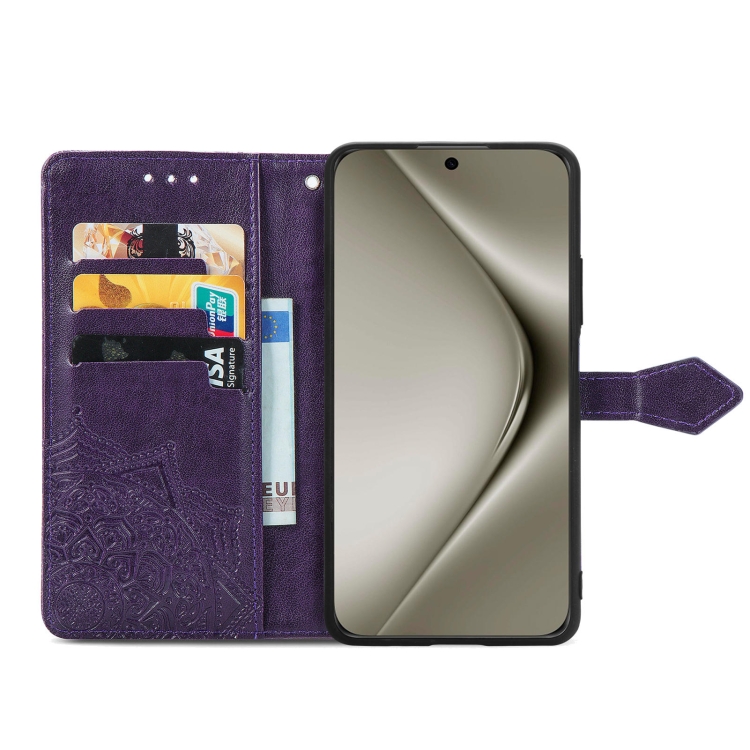 Funda de Cuero Huawei Pura 70 Ultra Mandala Flower en Relieve (Púrpura)