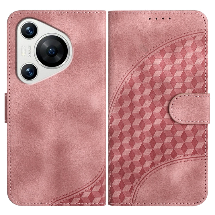 Funda de Cuero para Huawei Pura 70 Yx0060 con Relieve y Cabeza de Elefante con Cordón (Rosa)