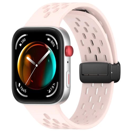 Correa de Silicona para Huawei Watch Fit3 Holes Style con Hebilla Magnética Plegable (Rosa)