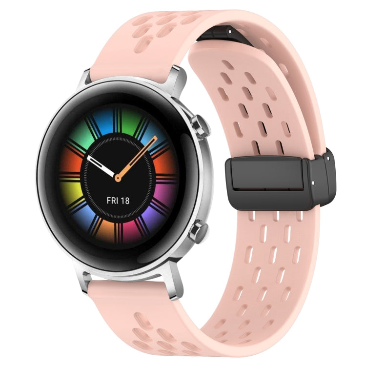 Correa de Reloj de Silicona para Huawei Watch GT2 42mm 20mm con Cierre Magnético Plegable (Rosa)