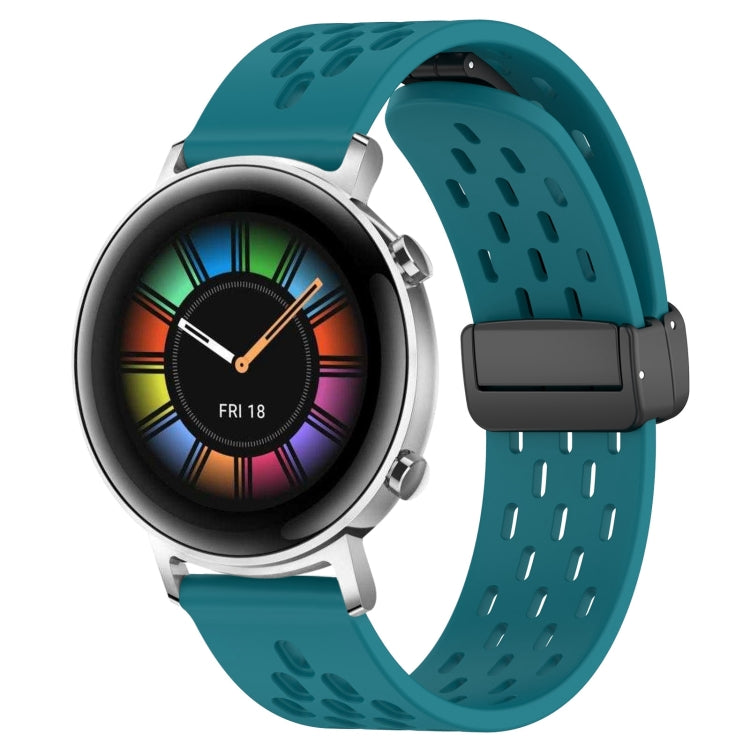 Correa de Silicona para Huawei Watch GT2 42mm 20mm con Cierre Magnético Plegable (Verde Oculto)