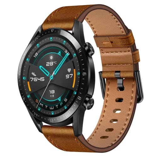 Correa de Cuero para Huawei Watch GT2 46mm 22mm con Conector Sx y Botón de Metal (Rojo Marrón)