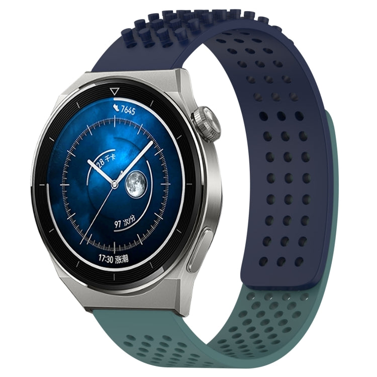 Para Huawei Watch Gt3 Pro 46mm 22mm Agujeros Correa de Reloj de Silicona Transpirable con Puntos 3D (Azul Medianoche + Verde Oliva)
