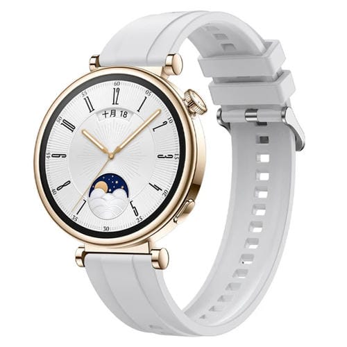 Correa de Silicona para Huawei Watch GT4 41mm con Patrón de Neumático y Hebilla Plateada (Blanco)