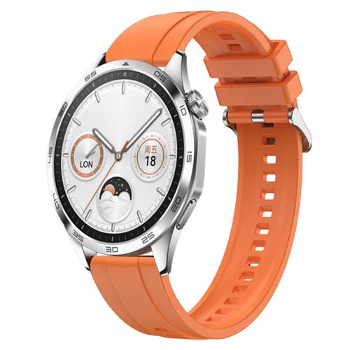 Correa de Silicona para Huawei Watch GT4 46mm Patrón Neumático con Hebilla Plateada (Naranja)