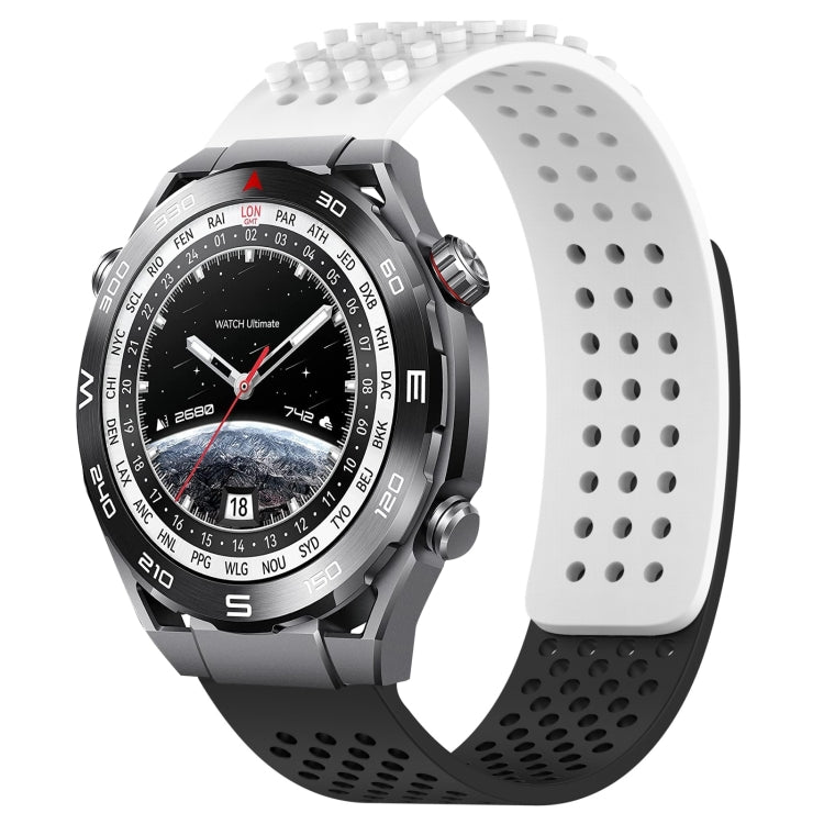 Correa de Silicona para Huawei Watch Ultimate 22mm con Puntos 3D Transpirables (Blanco + Negro)
