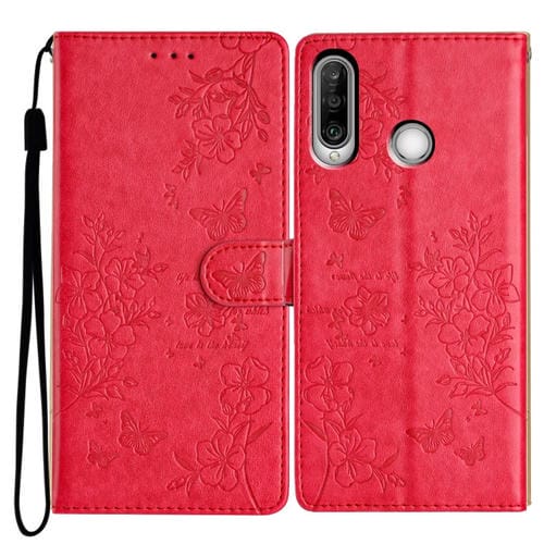 • 1x Funda de Cuero para Huawei Y6P Butterfly Love Flower con Relieve (Rojo)