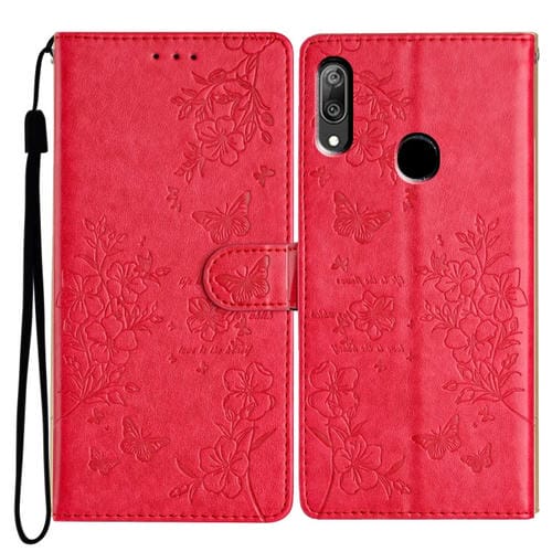 - 1x Funda para Huawei Y7 2019 de Cuero con Relieve de Flor y Mariposa (Rojo)