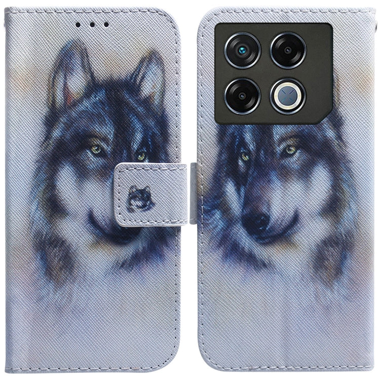 Funda de Cuero para Infinix Gt 20 Pro con Tapa y Dibujo Coloreado (Lobo Blanco)