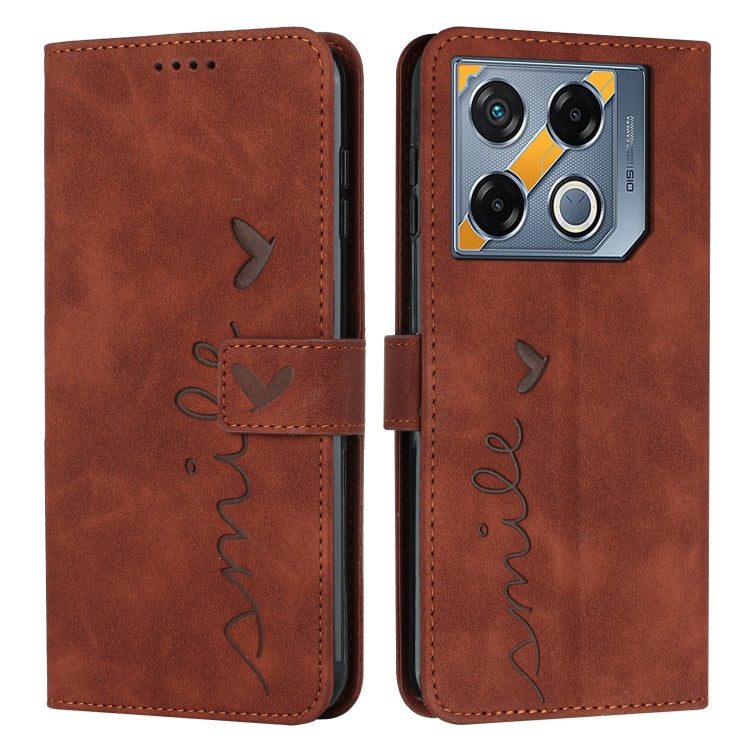 Funda de Cuero para Infinix GT 20 Pro Skin Feel Heart con Cordón Largo (Marrón)