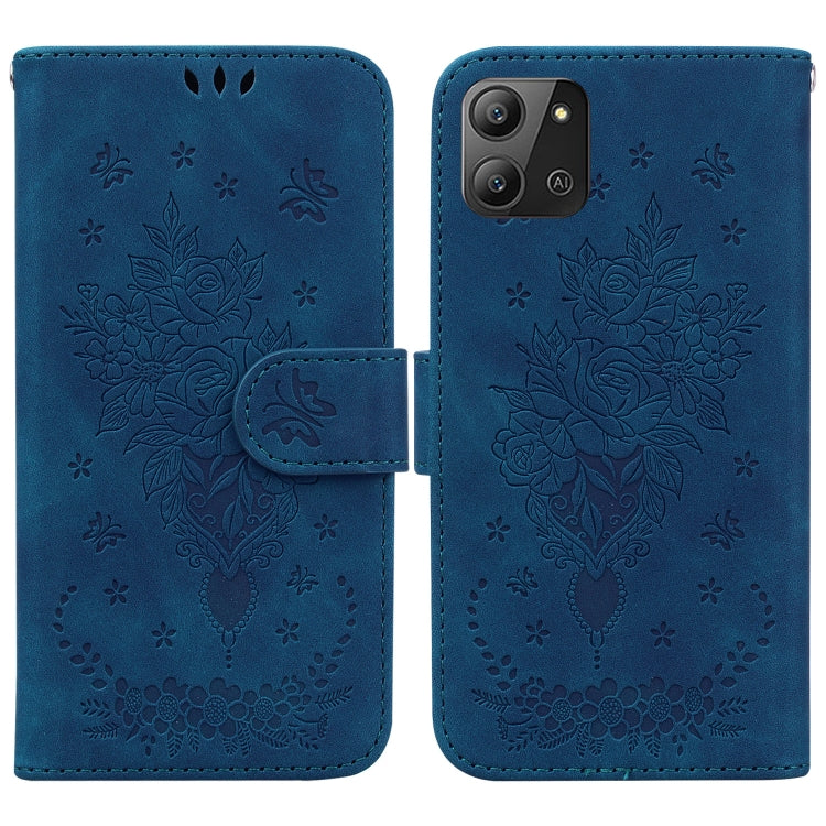 Funda de Cuero En Relieve Butterfly Rose para Infinix Hot 11 (2022) (Azul)