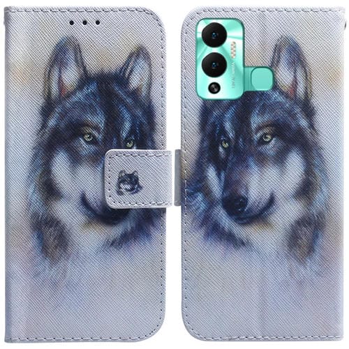 Juego de Tono Cuero Dibujo Color para Infinix Hot 12 (Lobo Blanco)