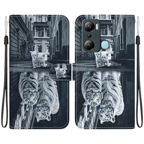 Funda de Cuero para Infinix Hot 20I con Dibujo Coloreado y Textura de Cristal (Reflejo de Tigre Gato)