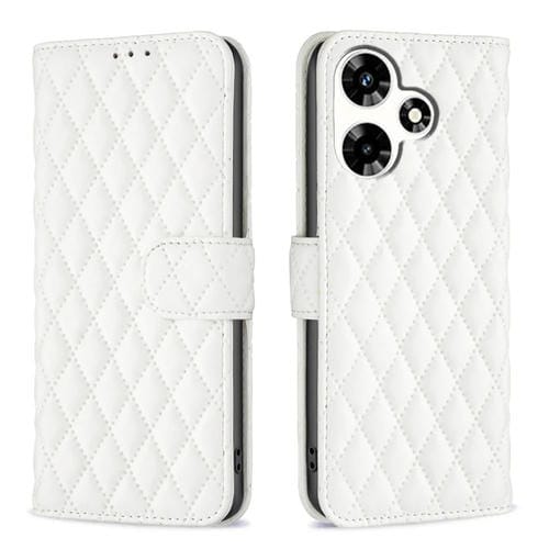 Funda de Cuero con Tapa para Infinix Hot 30 Diamond Lattice (Blanco)