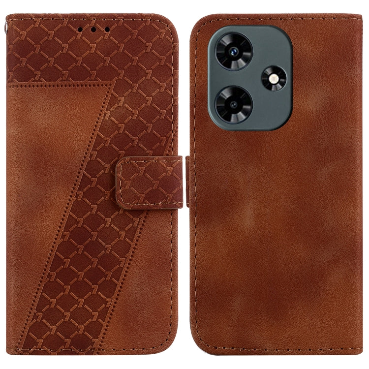 Funda de Cuero En Relieve en Forma de 7 para Infinix Hot 30 (Marrón)