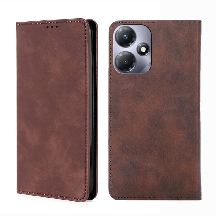 Funda de Cuero Magnética para Infinix Hot 30 Play 4G Skin Feel (Marrón Oscuro)