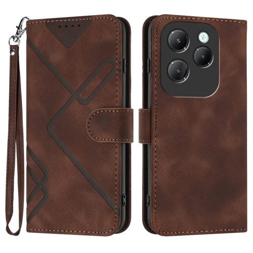 Funda de Cuero para Infinix Hot 40 con Sensación de Piel y Patrón de Líneas (Café)