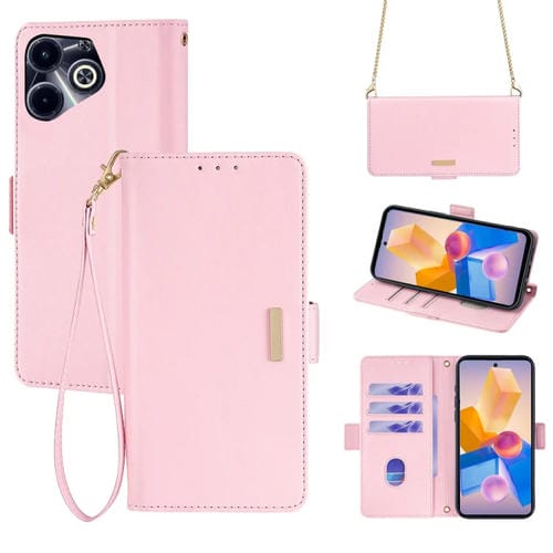 Funda de Cuero para Infinix Hot 40I 4G con Cadena Cruzada (Rosa)