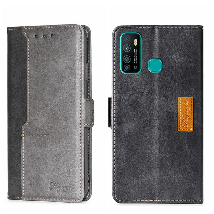 Estuche para teléfono Infinix Hot 9 Note 7 Lite X655C cuero con hebilla lateral (Negro + Gris)