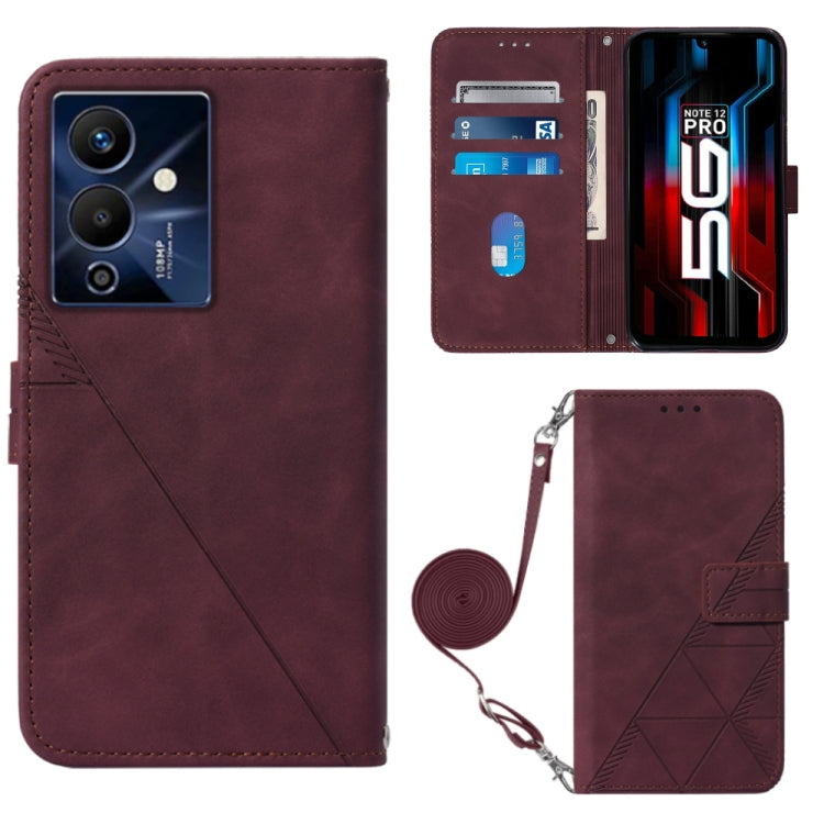 Funda de Cuero Crossbody 3D para Infinix Note 12 Pro 5G con Tapa En Relieve (Rojo Vino)