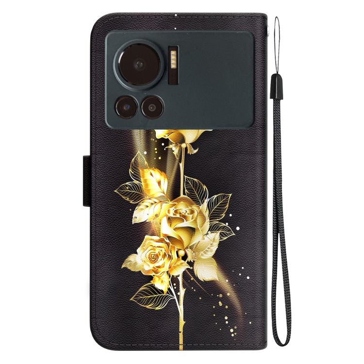 Funda de Cuero para Infinix Note 12 Vip con Dibujo Coloreado Mariposa Dorada Rosa Crystal Texture