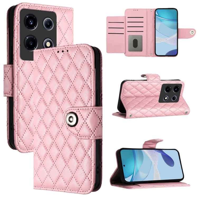 Funda de Cuero para Infinix Note 30 Vip con Tapa, Textura Rómbica y Cordón (Rosa)